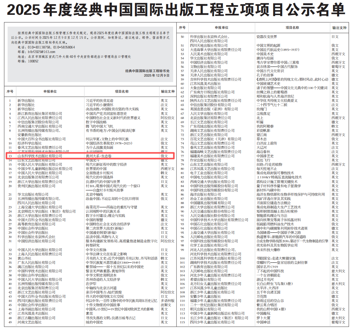 近日,2025年度“经典中国国际出版工程”立项名单完成公示,由山东大学黄河国家战略研究院黄河流域生态保护和环境治理中心王仁卿教授团队主编的《黄河大系·生态卷》(俄文版)成功入选。